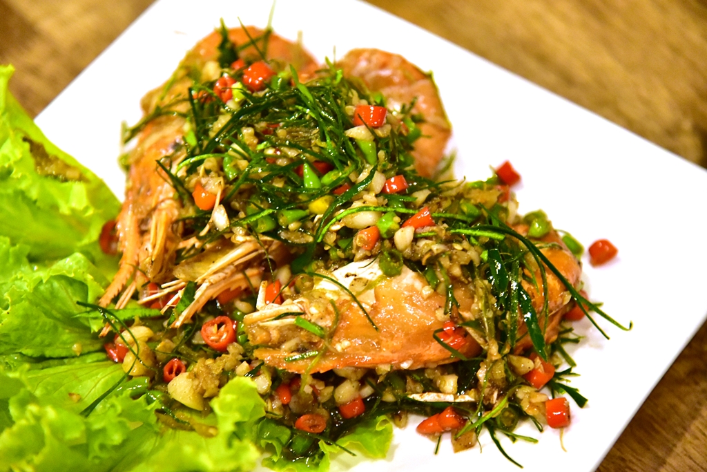 6. Fried Prawn with Salt and Chilli (350 THB) – กุ้งตัวใหญ่ทอดกับพริกเกลือรสเผ็ดจัดจ้านมากๆ