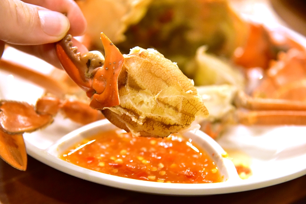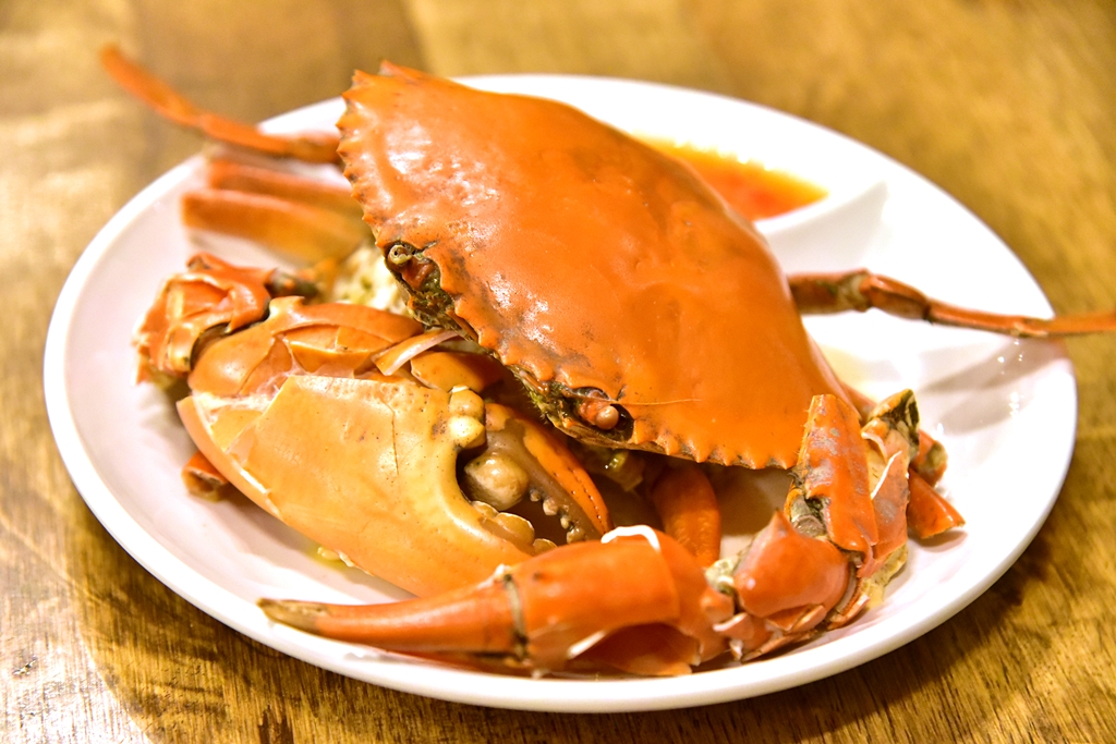 1. Steamed Crab (450 THB) – ปูเนื้อนึ่งเสิร์ฟคู่กับน้ำจิ้มซีฟู้ด ปูนี่ตัวเป็นๆเลย เนื้อปูหวานฉ่ำสดมาก