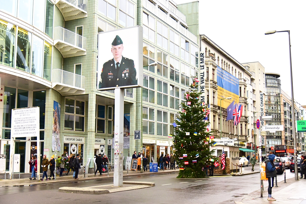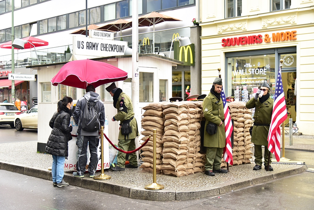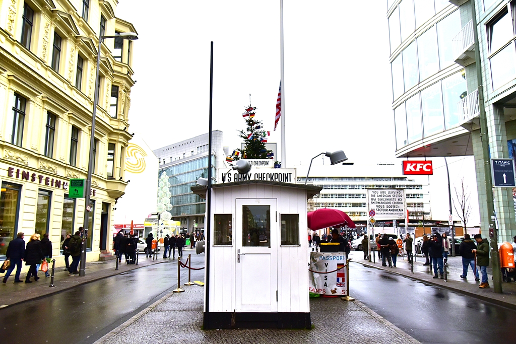 จุด check-in จุดแรกของเมือง Berlin ที่นักท่องเที่ยวทุกคนต้องมาถ่ายรูป (ถึงแม้ว่ามันจะไม่ค่อยมีอะไรก็ตาม) นั้นก็คือ Checkpoint Charlie หรือ จุดตรวจ C ของกองทัพทหารสหรัฐอเมริกาที่ตั้งอยู่ตรงกลางระหว่างเยอรมนีตะวันออกและตะวันตก (ดูแบบจำลองได้ในหนังเรื่อง Bridge of Spies) ซึ่งที่จุดเช็คพอยต์นี้จะมีกองทหารปลอมให้ถ่ายรูปคู่ได้ แต่ต้องเสียตังค์ด้วยนะ….