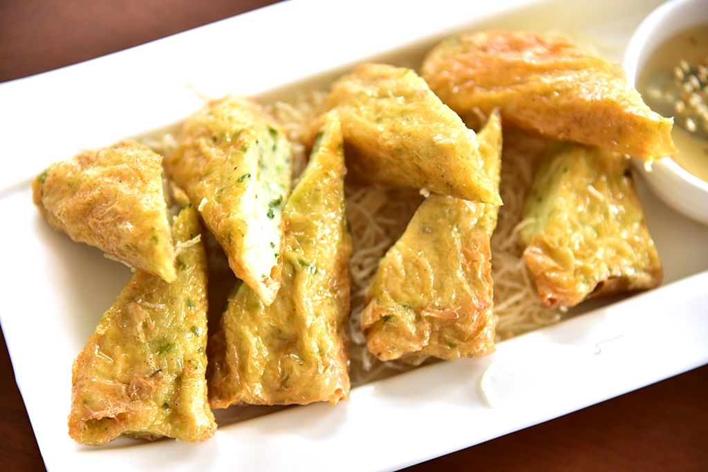 1. Japanese Spring Roll (180 THB) – ป่อเปี๊ยะลูกชิ้นปลาญี่ปุ่นเนื้อนุ่มเด้งเสิร์ฟคู่กับน้ำจิ้มบ๊วยรสหวานเข้ากัน