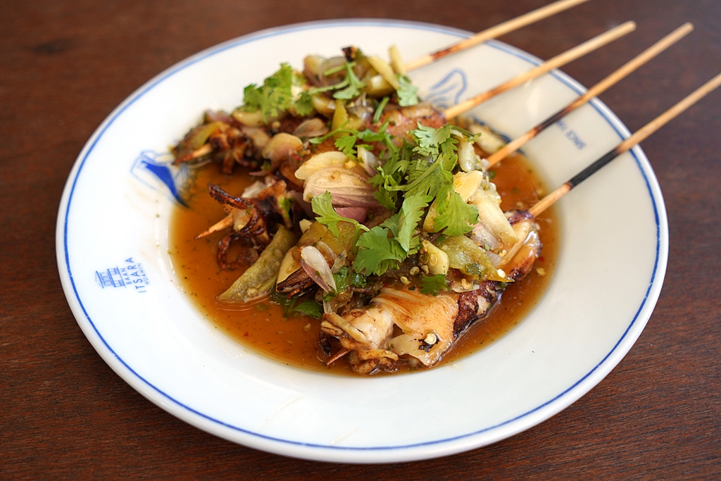 2. Grilled Squid with Tamarind Sauce (240 THB) [12/20] – ยำหมึกย่างเสียบไม้ราดซอสมะขาม