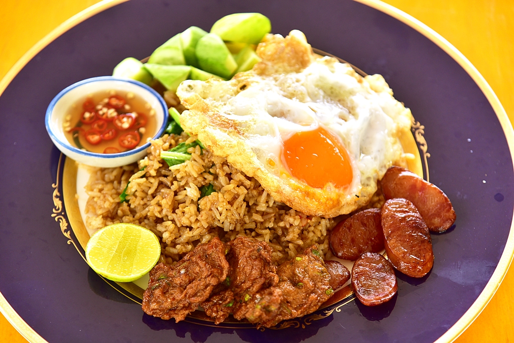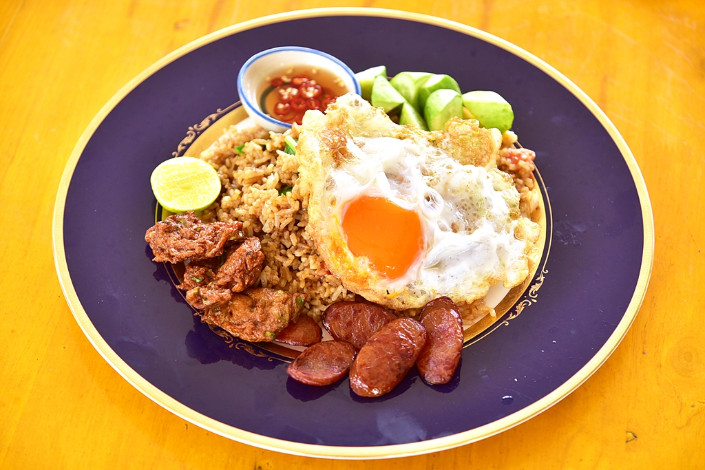 6. ข้าวผัดโบราณ (89 THB) – ข้าวผัดน้ำพริกจานยักษ์เสิร์ฟคู่กับทอดมัน กุนเชียงและไข่เป็ดดาวไซส์ยักษ์ ถือเป็นเมนูที่ใหญ่และคุ้มค่ามาก