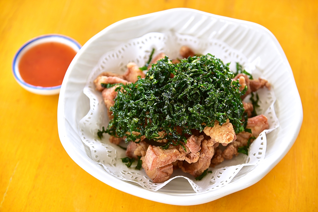 3. หมูทอดใบชะพลู (169 THB) – หมูสามชั้นชุบแป้งแบบบางๆทอดกรอบเนื้อนุ่มฉ่ำด้านในโรยหน้าด้วยใบชะพลูทอดหอมๆเสิร์ฟคู่กับน้ำจิ้มรสเผ็ดหวาน เป็นเมนูหมูทอดที่อร่อย หอมและอ้วนมาก
