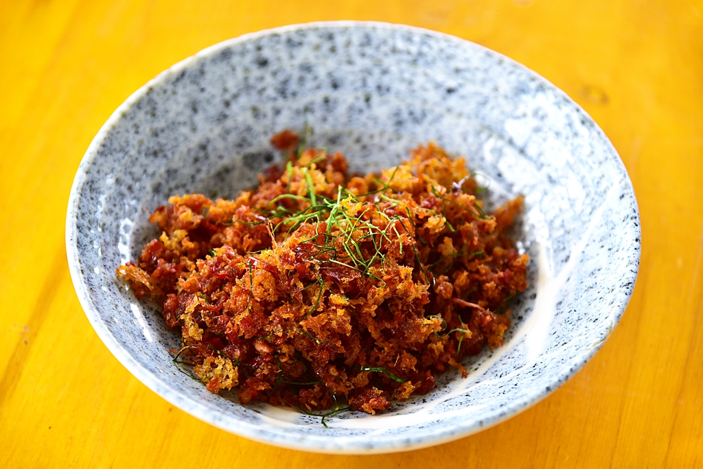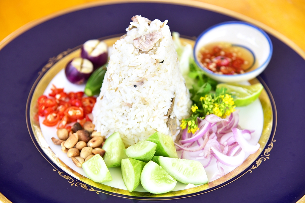 7. ข้าวคลุกปลาทู (89 THB) – ข้าวสวยคลุกเคล้ากับเนื้อปลาทูทอดเสิร์ฟพร้อมกับเครื่องเคียงหลากชนิด