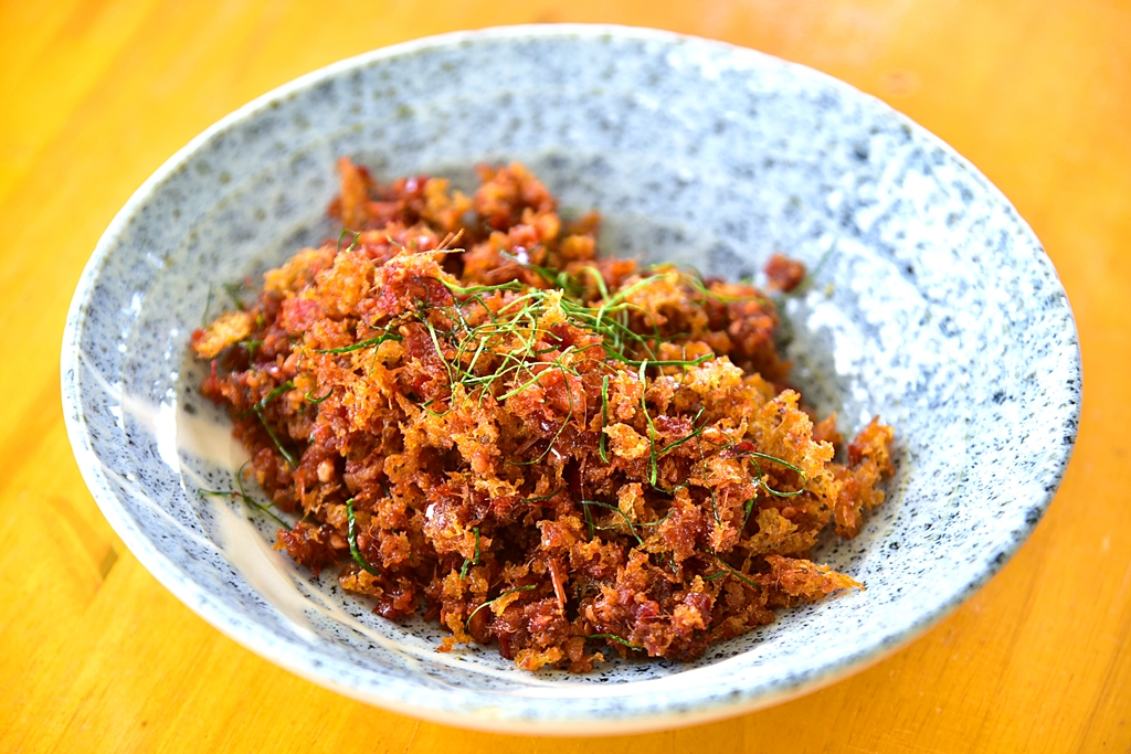 4. ปลาดุกฟูผัดพริกขิงอย่างโบราณ (179 THB) – ปลาดุกฟูเนื้อล้วนทอดกรอบเบาไม่มันคลุกเคล้ากับเครื่องแกงโบราณรสเข้มอร่อย