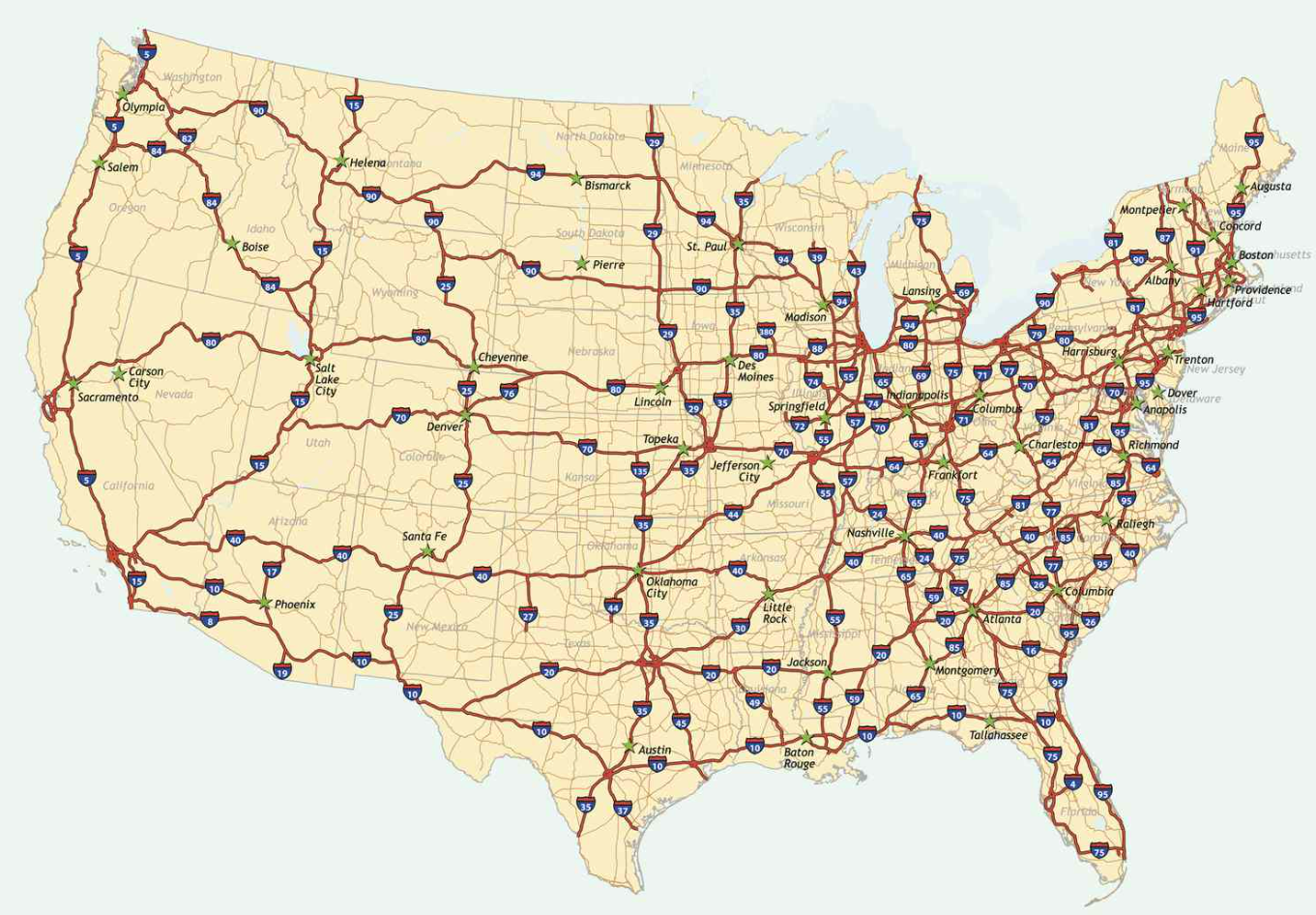 ระบบ Interstate Highway System ที่เชื่อมต่อรัฐทั่วประเทศสหรัฐอเมริกา (source: ThoughtSo)