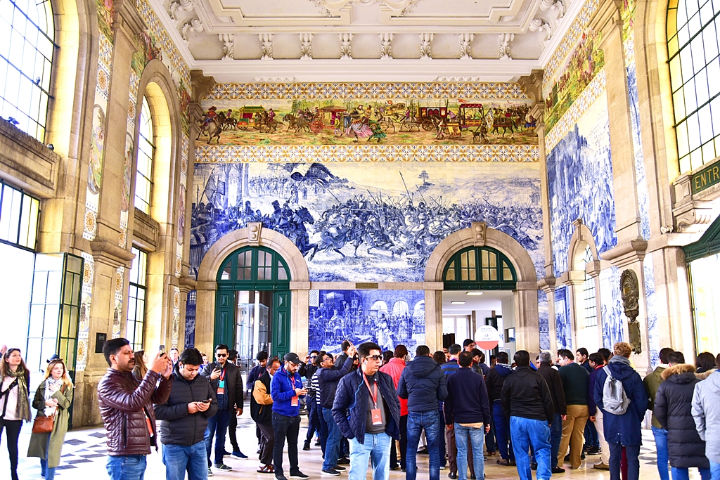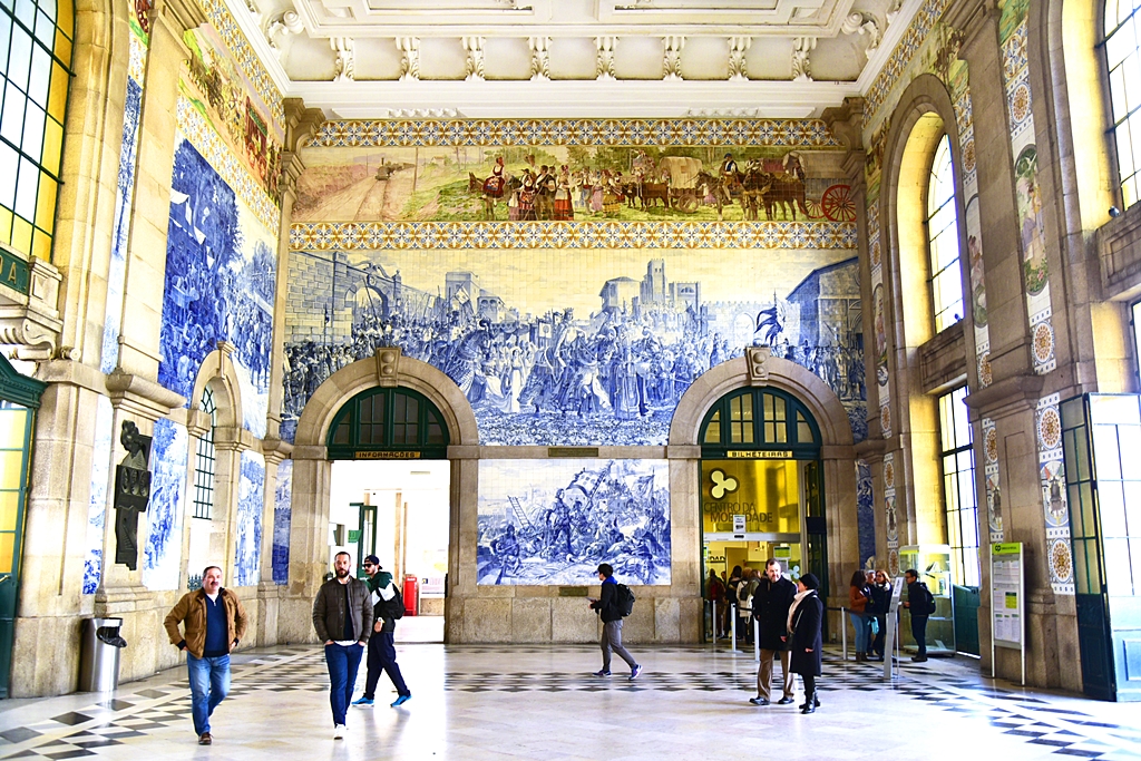 São Bento: ถัดมาที่ย่านกลางเมืองจะเป็นที่ตั้งของสถานีรถไฟกลางของเมือง Porto ที่เราไม่ได้มาเพื่อขึ้นรถไฟ แต่มาเพื่อชมงานจิตกรรมฝาผนังที่อลังการมากๆ ชอบมากเลย !!