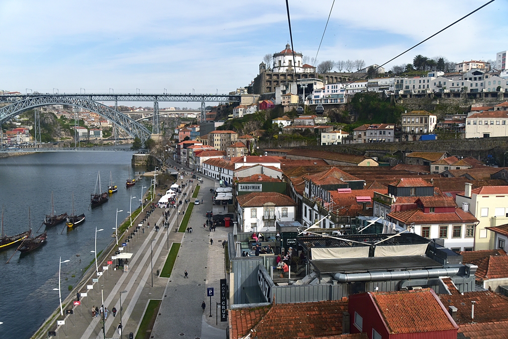 และเนื่องจากเมือง Porto นั้นมีภูมิประเทศแบบสูงๆต่ำๆ ทำให้ผมเลือกที่จะนั่งกระเช้าไฟฟ้าจากยอดของสะพานเพื่อลงไปยังพื้นที่ริมแม่น้ำด้านล่างครับ