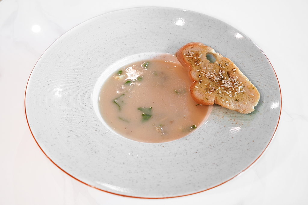 2. Clam Chowder (120++ THB) [11/20] – ซุปหอยลายแบบอเมริกันเนื้อนวลๆข้นๆเสิร์ฟคู่กับขนมปังกระเทียมกรอบๆ