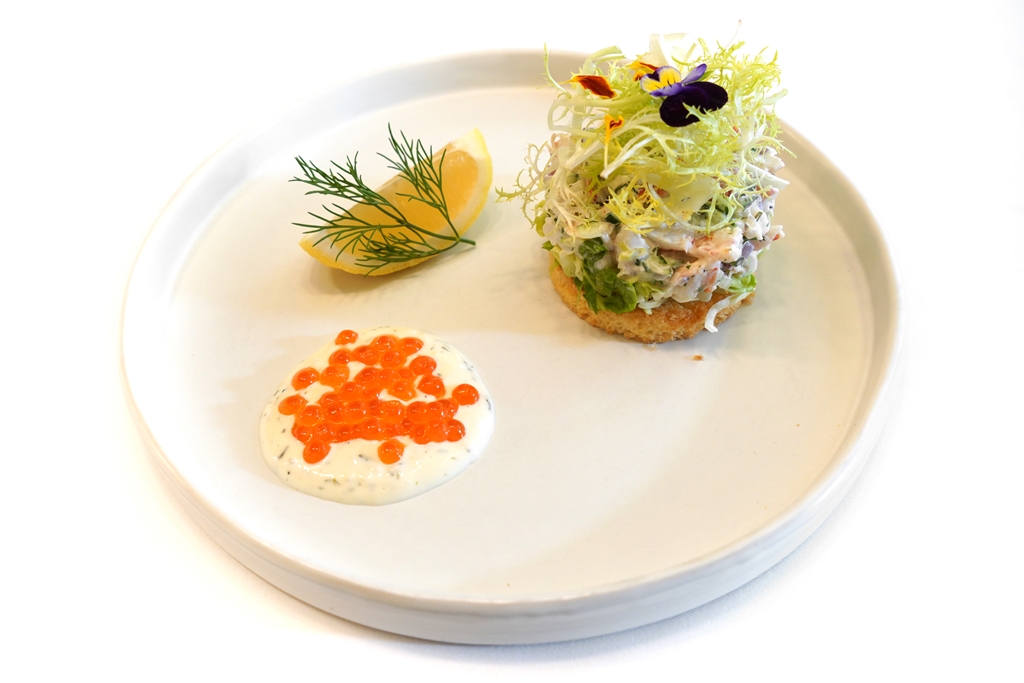 2. Prawn Skagen on Toast (350++ THB) [15/20] – ขนมปังกรอบหน้าสลัดกุ้งลวกแบบเย็นเสิร์ฟคู่กับซอสมายองเนสไข่ปลาแซลม่อน