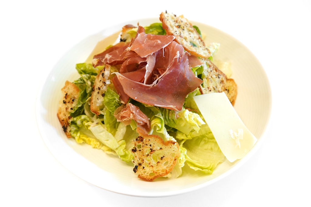 3. Caesar Salad (350++ THB) [14/20] – ซีซาร์สลัดแบบคลาสสิคหน้าขนมปังกรอบ พาร์มีซานชีสแผ่นและแฮม Jamon Serrano