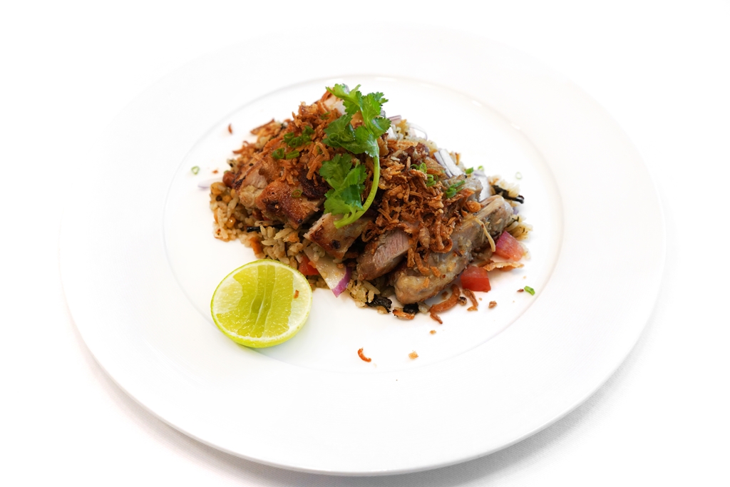 4. Lemongrass Gai Yang Laphed (390++ THB) [16/20] – ไก่ย่างตะไคร้หนังกรอบเสิร์ฟคู่กับข้าวผัดใบชาหมักและธัญพืชแบบพม่า