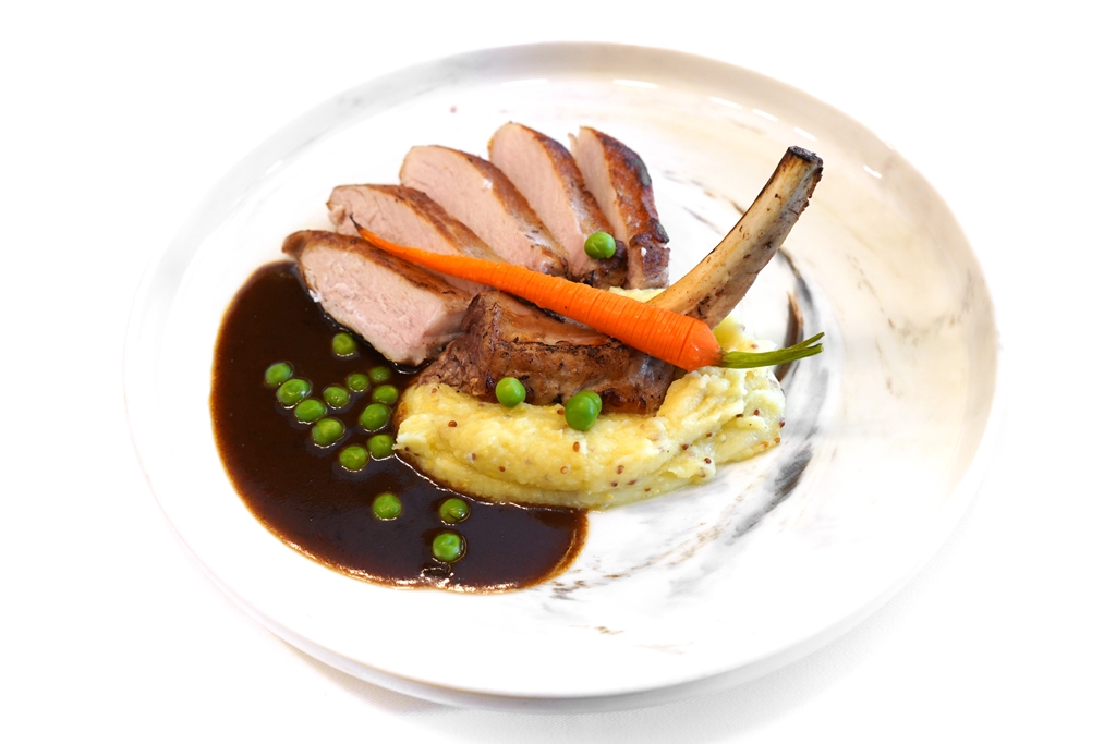 5. Grilled Pork Chop (450++ THB) [15/20] – พอร์คช็อปชิ้นโตย่างได้กำลังดีเสิร์ฟคู่กับมันบดมัสตาร์ด แครอทย่างและซอสทรัฟเฟิลถั่วลันเตา