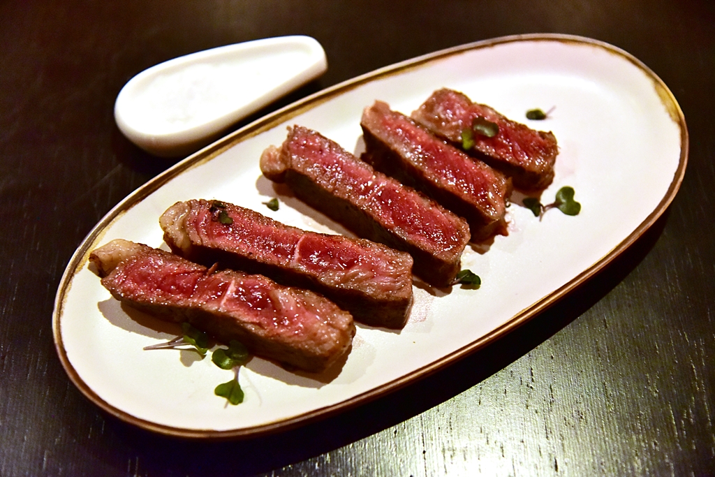 3. Char-grilled Australian Wagyu Striploin Marble 5 in Tagliata Style (420+ THB) – เนื้อออสเตรเลียนวิกิวย่างถ่านได้อย่างเพอร์เฟ็คต์เสิร์ฟคู่กับน้ำมันมะกอกและเกลือป่น โคตรดี ทานแล้วอยากสั่งอีกจานทันที