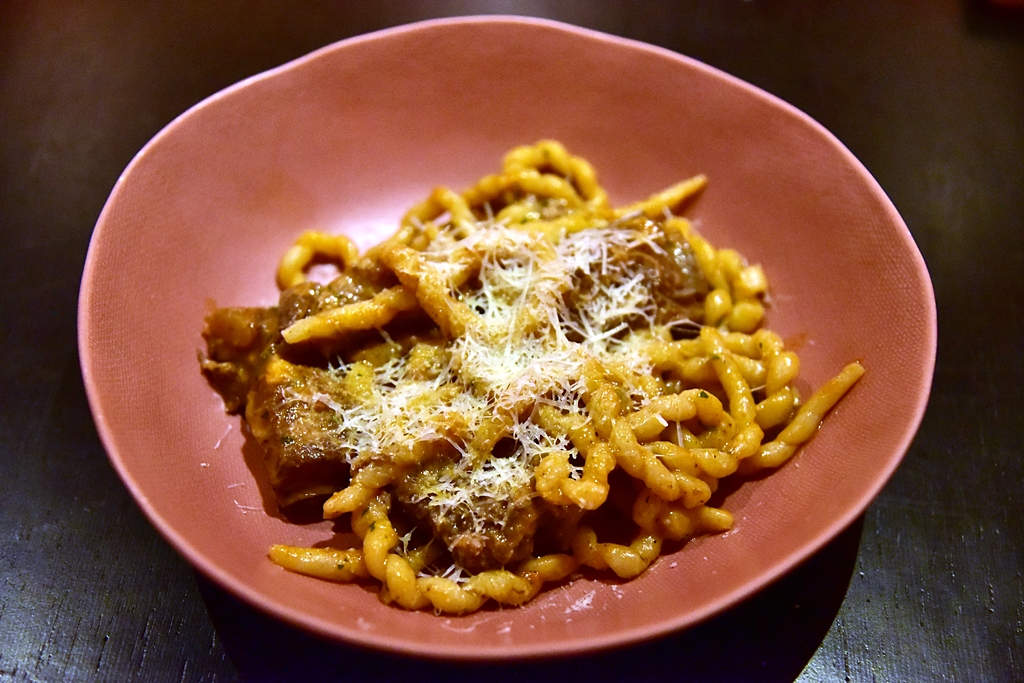 5. Fall-off-the-bone Pork Ribs, Hand Rolled Fileja Pasta, Spicy Nduja, Pecorino Romana (380+ THB) – พาสต้าเส้นเหนียวแน่นในซอสเครื่องเทศและกระดูกหมูตุ๋น อร่อยโคตร