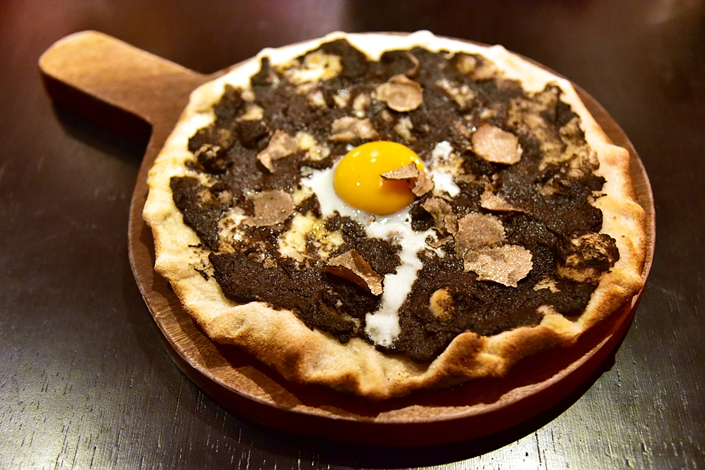 4. Truffle, Slow-cooked Egg, Butter & Italian Black Truffle (650+ THB) – พิซซ่าหน้าทรัฟเฟิลแบบจัดหนักและไข่ไก่เยิ้มๆสำหรับผู้ที่ชื่นชอบทรัฟเฟิลและพิซซ่าโดยเฉพาะ
