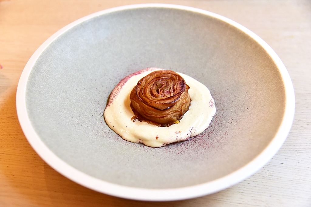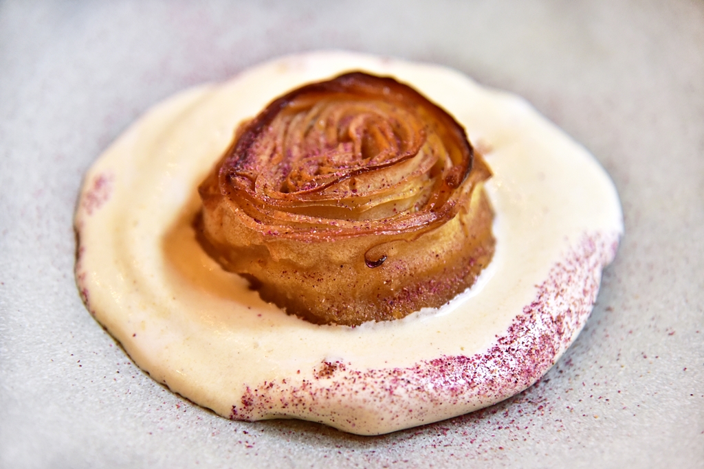 7. Apple Pie with caramel, rose and brown butter ice cream (95 DKR) – แอปเปิ้ลพายในรูปดอกกุหลาบเสิร์ฟในไอศกรีมเนยที่เข้ากันได้ลงตัวมากๆ