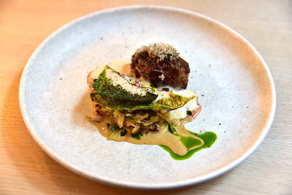 6. Pork Frikadelle with fried cabbage, lingonberries and parsley (135 DKR) – มีทบอลเนื้อหมูย่างเสิร์ฟคู่กับผักย่างนานาชนิด
