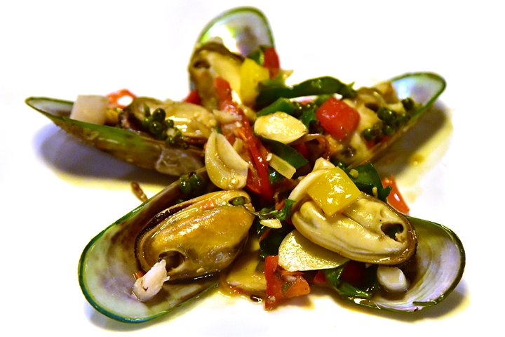 3. New Zealand Mussel Pad Cha (240 THB) – หอยแมลงภู่นิวซีแลนด์ผัดฉ่ารสชาติเข้มข้นใช้ได้เลย