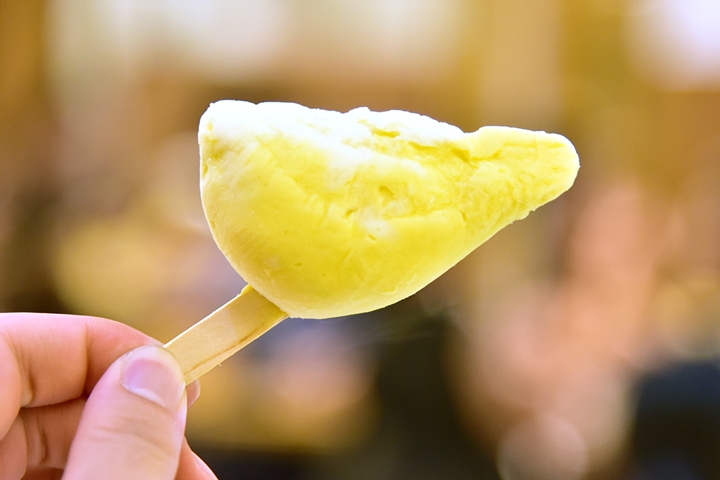 3. Durian Crumbstick (95 THB) – ไอศกรีมทุเรียนเนื้อแน่นกลิ่นหอมอบอวลที่สามารถซื้อกลับไปทานที่บ้านได้แบบสบายๆ