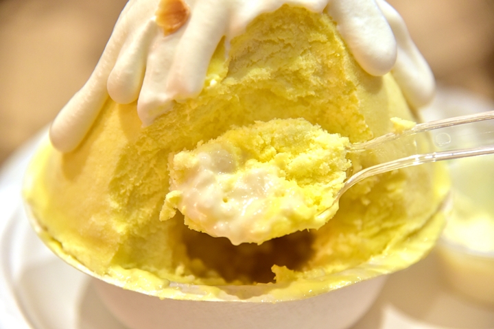 2. Durian Sticky Rice Kakigori (345 THB) – คากิโกริทุเรียนรสเข้มข้นสอดไส้ข้าวเหนียวมูน ขอบอกว่าเหมือนทานทุเรียนในรูปของน้ำแข็งไสมากๆ ฟินสุดๆ