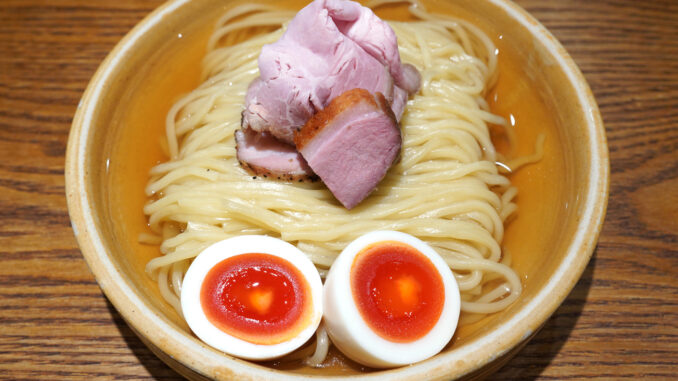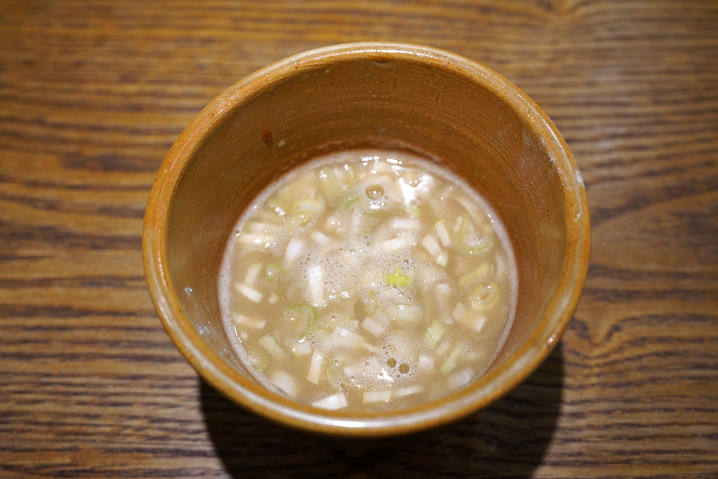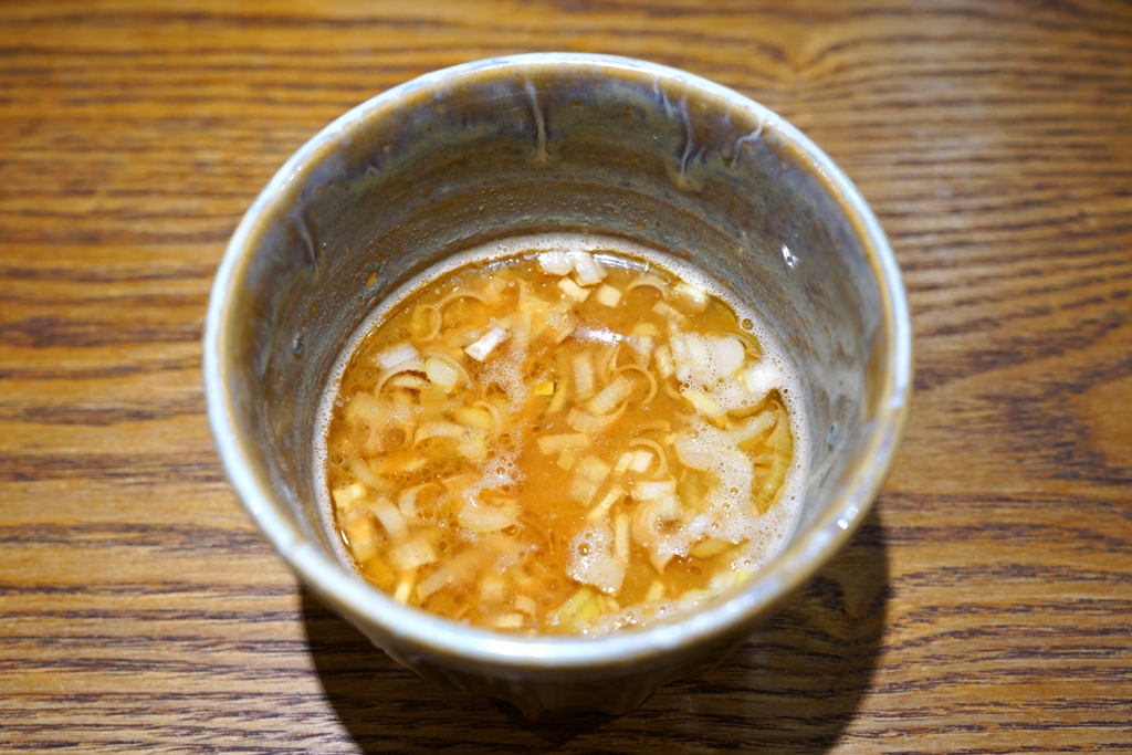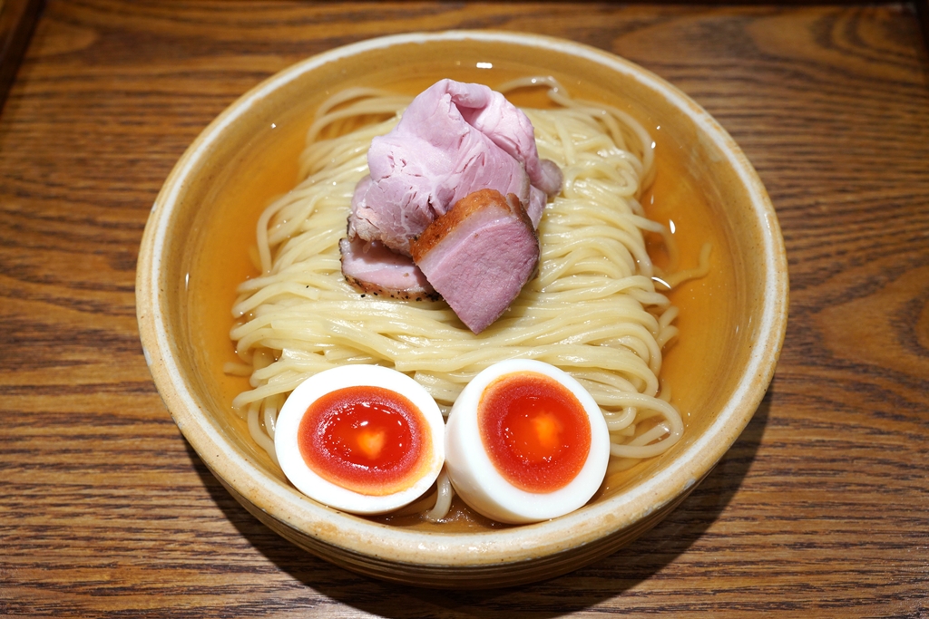 1. Cold Tsukemen with Pork Bone Seafood Soup and Garlic Soy Sauce Soup (1,400 JPY) [17/20]สึเคเมนเสิร์ฟแบบเส้นเย็นคู่กับน้ำซุปกระดูกหมูปลาแห้งสูตรต้นตำรับรสกลมกล่อมอูมามิและซุปกระดูกหมูสูตรกระเทียมรสเค็มหอม