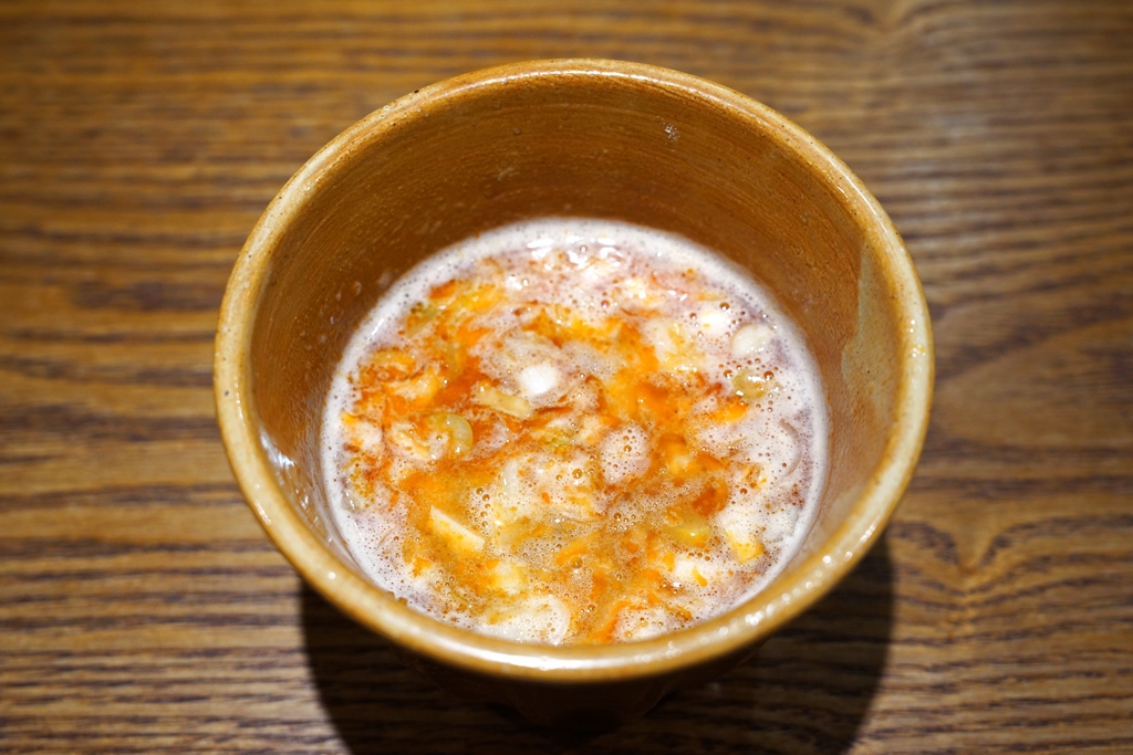 2. Hot Tsukemen with Shrimp Soup and Tandan Soup (1,400 JPY) [17/20]สึเคเมนเสิร์ฟแบบร้อนในน้ำสาหร่ายคอมบุเสิร์ฟคู่กับน้ำซุปกุ้งรสเค็มหอมอูมามิและน้ำซุปตันตันหมูสับรสเผ็ดมัน