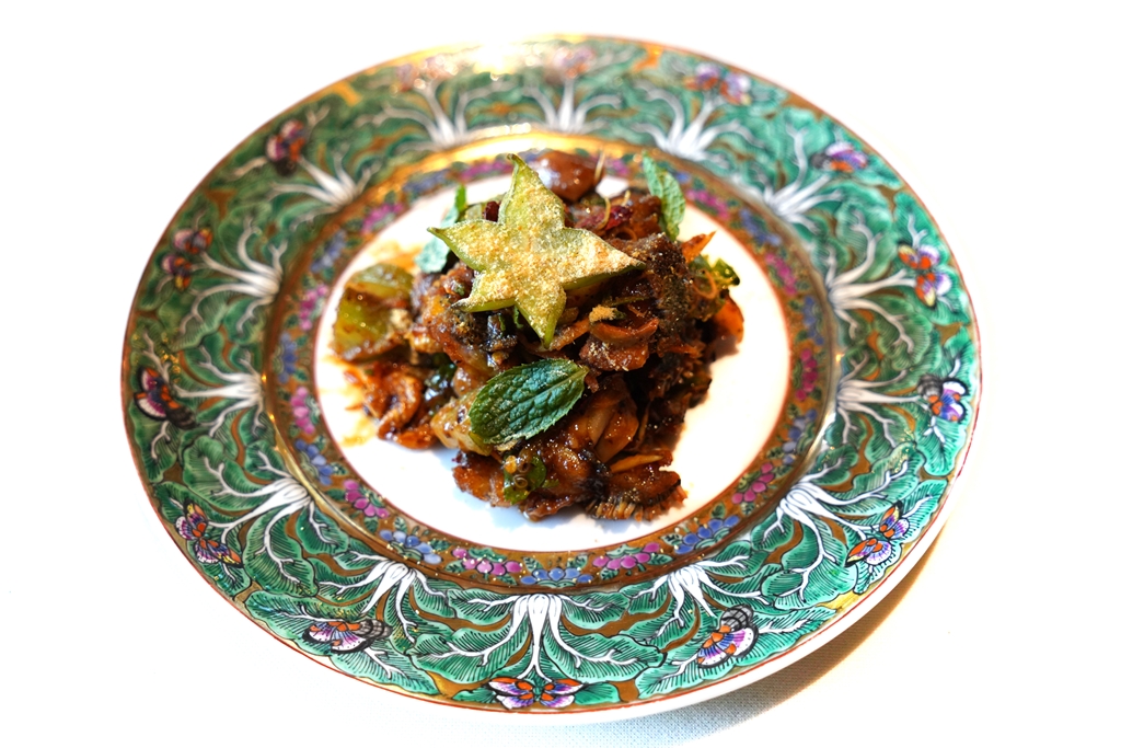 7. Seasonal Fruit Salad and Crispy Goby (450+ THB) [16/20] – ยำผลไม้ตามฤดูกาลรสเข้มข้นคลุกเคล้ากับปลาบู่ทอดกรอบ