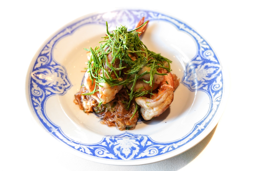 5. Stir-Fried Banana Prawn with Vermicelli, Shrimp Paste, Stink Beans, Climbing Watter and Pickled Garlic (550++ THB) [16/20] – กุ้งแชบ๊วยหลังมันตัวโตผัดสี่หอมกับวุ้นเส้นและเครื่องรสเข้มข้น