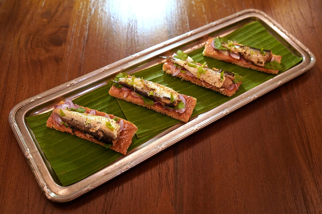 Sardines on Toast [16/20] – “โทสต์พระปกเกล้า” ขนมปังปิ้งหน้าปลาซาร์ดีนเสิร์ฟพร้อมกับซอสเต้าหู้ยี้ หอมแดงซอย น้ำส้มซ่าและมะนาว ปรุงรสชาติแบบจัดจ้านและเน้นความเค็มอูมามิจากเนื้อปลา