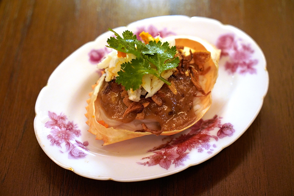 Fresh Rice Vermicelli with Crab, Coconut and Chili [16/20] – “เรไรหน้าปู” ที่เป็นเส้นจากแป้งข้าวเหนือเหนียวหนึบเสิร์ฟพร้อมกับเนื้อปูและซอสถั่วเขียวย่างโรยหน้าด้วยหอมเจียวและกระเทียมเจียว