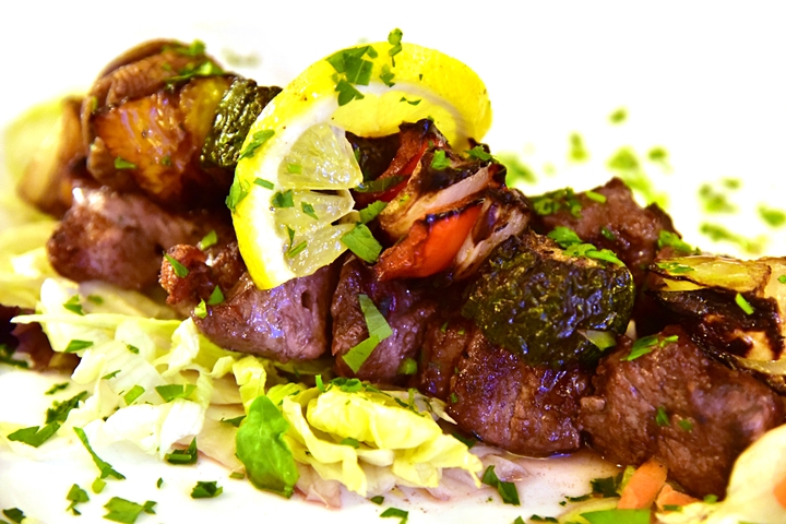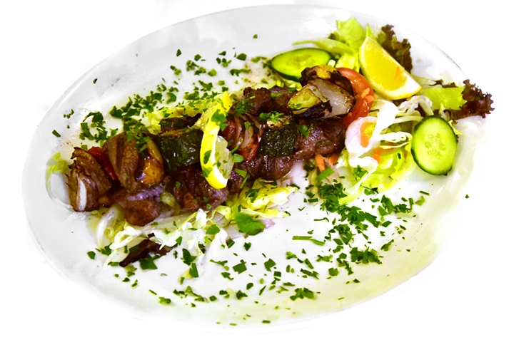 1. Alexander’s Kebab (12.95+ GBP) – เนื้อแกะหมักเครื่องเทศย่างเสิร์ฟคู่กับพริกหยวก เห็ดและหอมหัวใหญ่