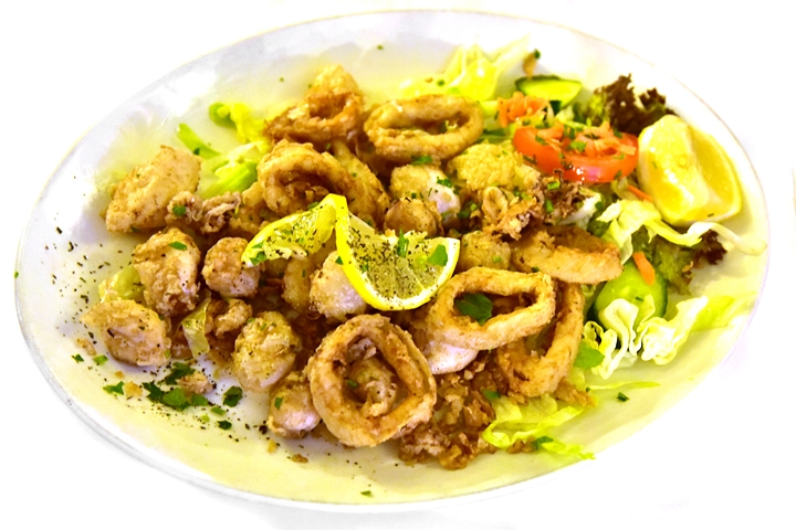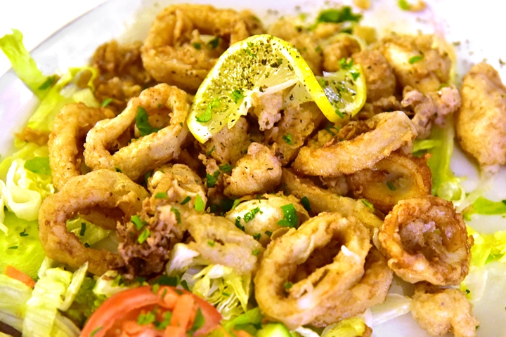 2. Baby Kalamali (14.95+ GBP) – ปลาหมึกชุบแป้งทอดกรอบจานยักษ์เสิร์ฟคู่กับสลัดกรีก