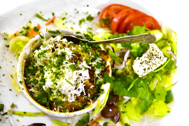 4. Moussaka (11.50+ GBP) – ลาซานญ่าสไตล์กรีกที่ประกอบด้วยมันฝรั่งและมะเขือม่วงพร้อมด้วยเนื้อบดและชีส