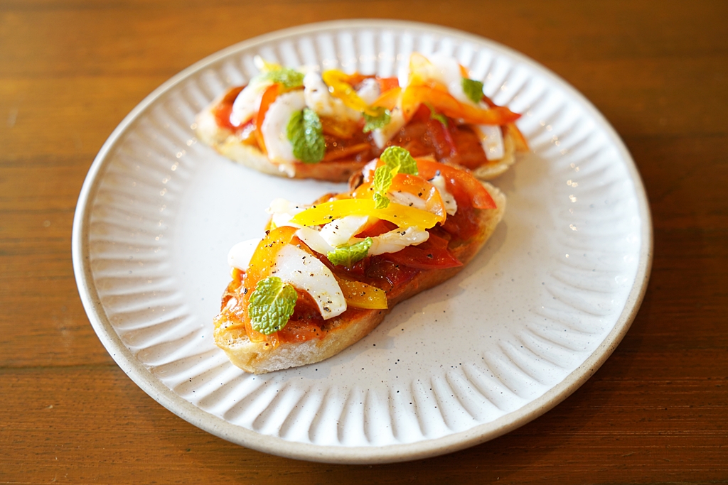 2. Cuttlefish and Roasted Capsicum Le Brusche (140 THB) [12/20] – ขนมปังหน้าปลาหมึกกระดองกับพริกหวานย่าง