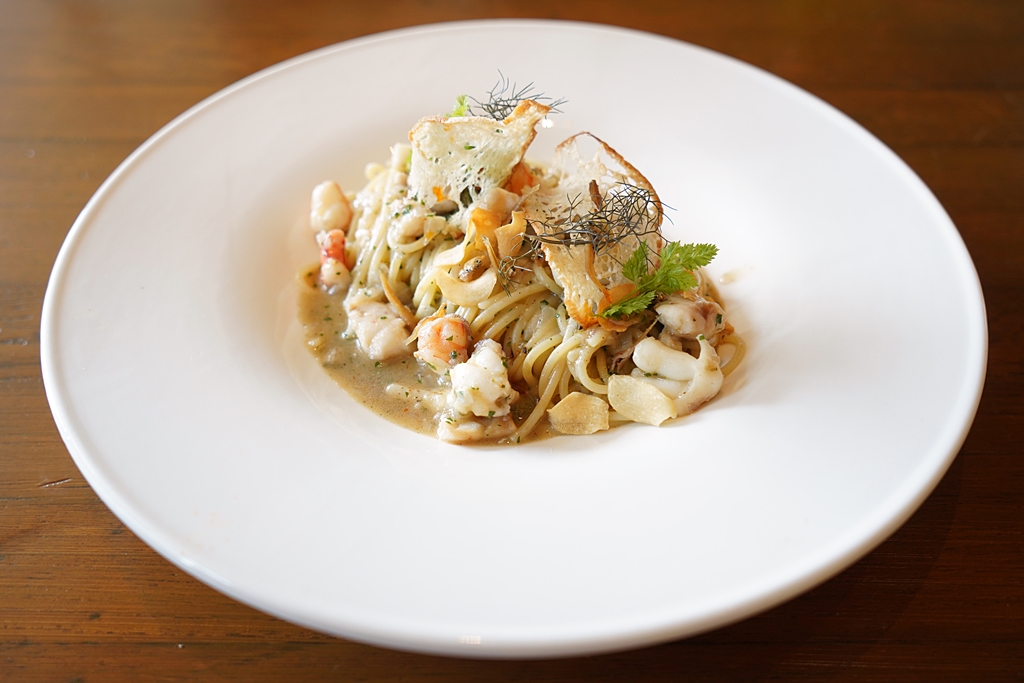 5. Spaghetti Aglio Olio and Seafood (380 THB) [14/20] – สปาเก็ตตี้ผัดกระเทียมน้ำมันมะกอกเสิร์ฟคู่กับอาหารทะเลหลากชนิดทั้งเนื้อกุ้ง เนื้อปลาหมึกและปลาจิ้งจั้งกรอบ ตัวซอสจะรสชาติออกแนวนุ่มนวลครับ
