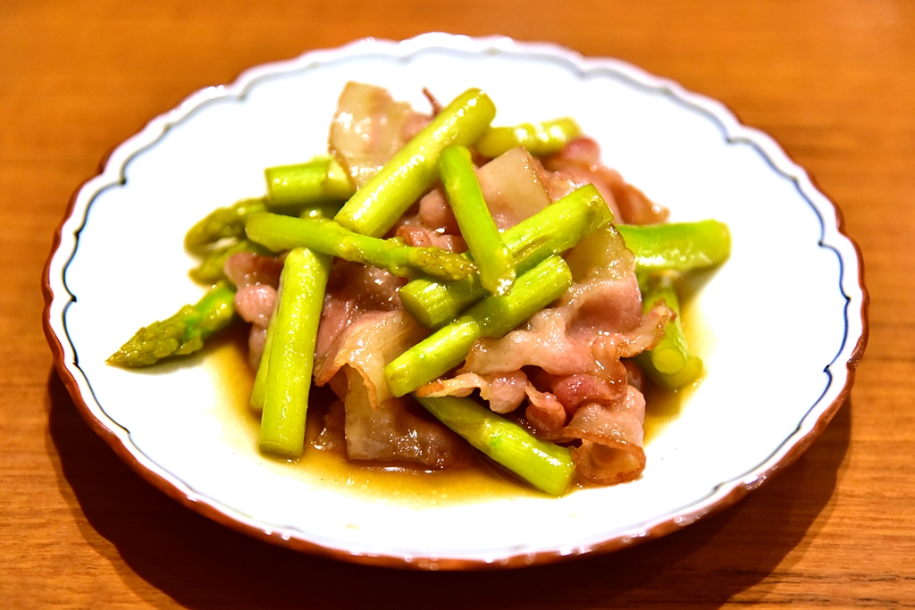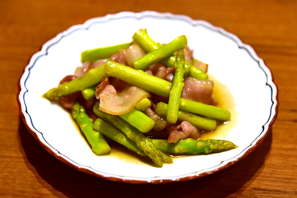 2. Asupara Bacon (250++ THB) – ผัดหน่อไม้ฝรั่งและเบค่อนรสชาติกลมกล่อม
