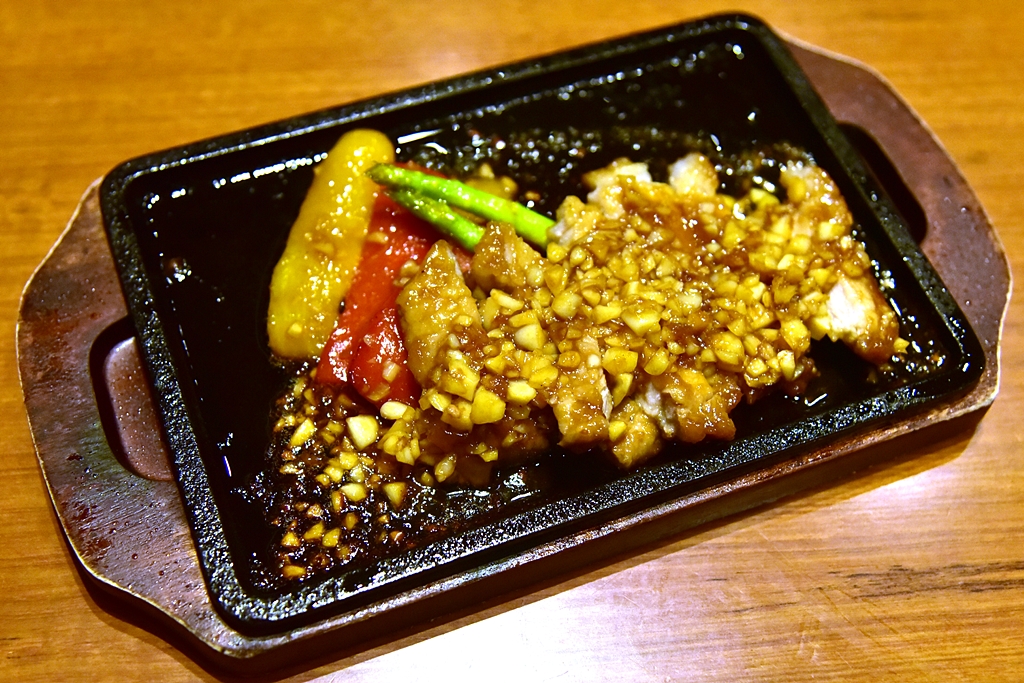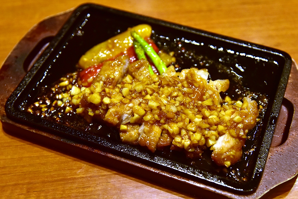 4. Buta Teppan Yaki (450++ THB) – สเต็กหมูสันนอกย่างกระทะสไตล์ญี่ปุ่นโรยหน้าด้วยกระเทียมแบบจุใจ