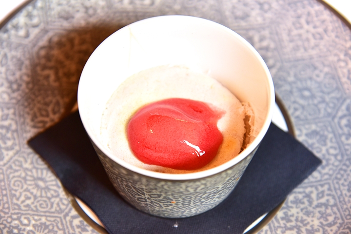 6th course: Soufflé chaud, Fraise Rhubarbe – ซูเฟรรูบาร์บร้อนๆและไอศครีมสตรอเบอร์รี