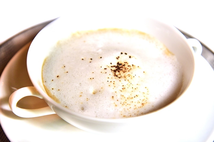 5th course: VELOUTÉ VELOUTÉ ‘like a cappuccino’ and its foie gras vapeurs – ซุปเห็ดฟองคาปุชชิโน่รสหอมมันอร่อยมาก ข้างในมีฟัวกราส์ด้วย
