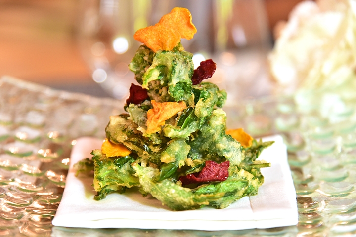 1st course: Beignets d’Herbes Aromatiques et Chips de Légumes – เทมปุระผักและสมุนไพรกรอบหอมๆมันๆ อร่อยดีนะ