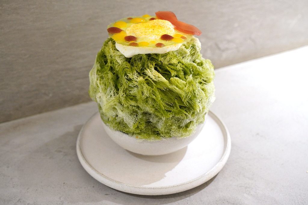 2. Matcha and White Cacau (2,900+ JPY) [15/20] – คากิโกริรสชาเขียวแบบฉลองวันคริสต์มาสที่เติมความอร่อยด้วยซอสครีมโกโก้ขาวและเนื้อเนื้อผลไม้หลากชนิด