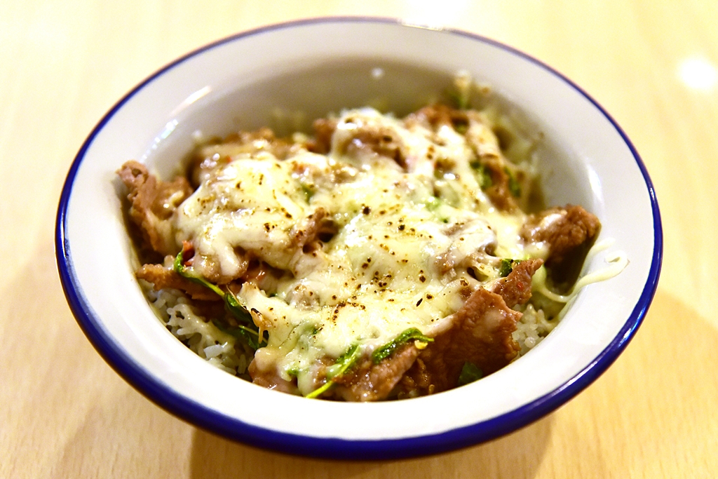 2. Stir-fried Local Beef with Holy Basil with Grilled Cheese (159 THB) – ข้าวหน้าเนื้อผัดกะเพราโปะมอสซาเรลล่าชีส รสชาติถือว่าดี แต่เนื้อทำออกมาได้เหนียวพอสมควรเลย