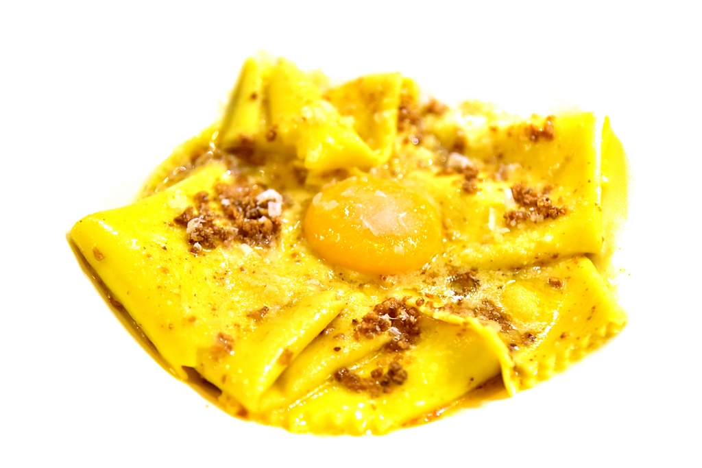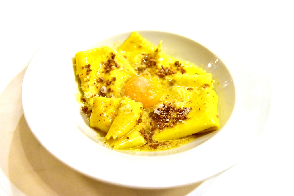 3. Silk Handkerchiefs, walnut butter & confit egg yolk (9 GBP) – พาสต้าเส้นสี่เหลี่ยมเสิร์ฟคู่กับเนยวอลนัทหอมมันและไข่แดงเยิ้มๆ