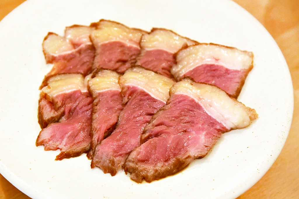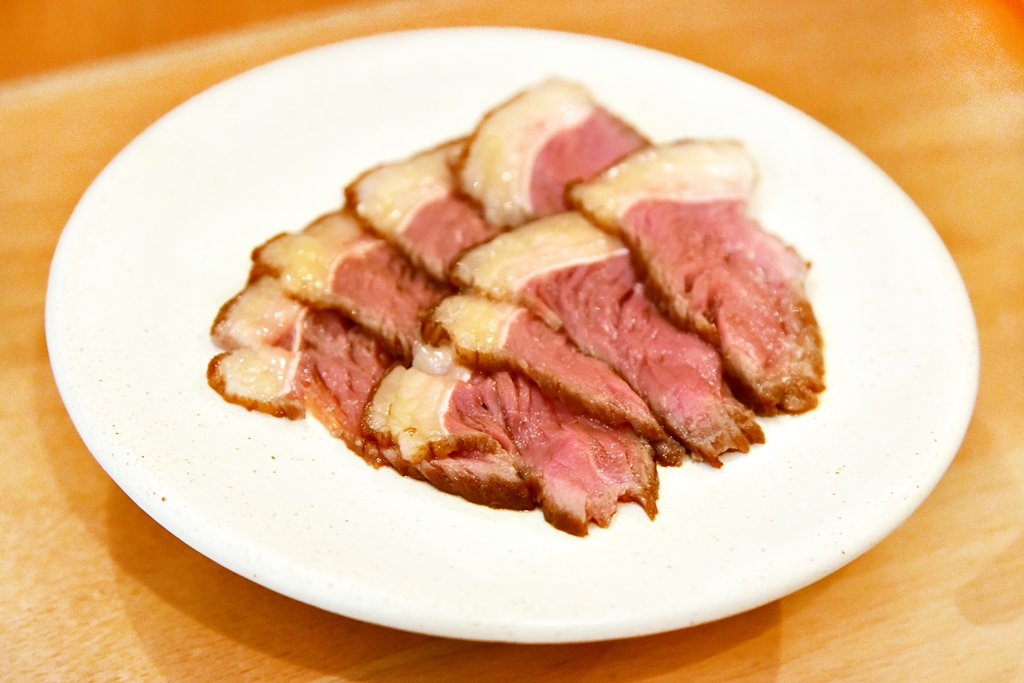 3. Aged Beef Rump Cap, Aged White Soy Sauce (6+ GBP) – เนื้อวัวหมักซอสซีอิ๊วขาวหั่นบางย่างแบบมีเดียม