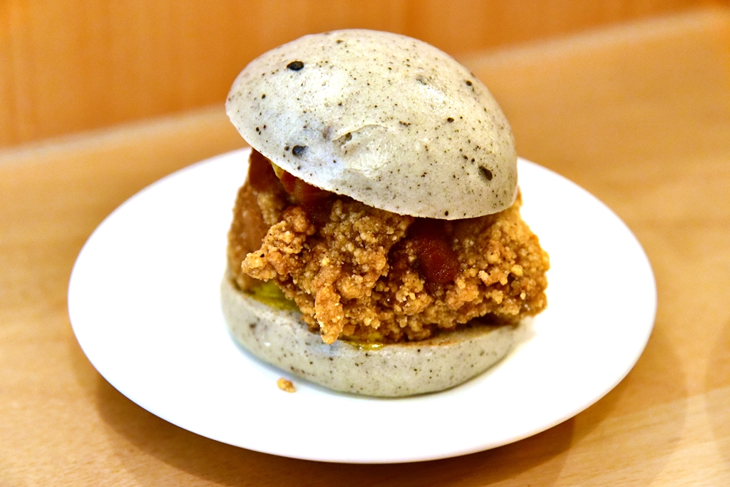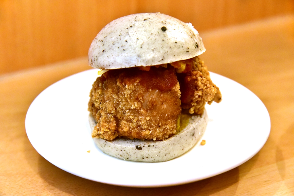 6. Fried Chicken Bao (5+ GBP) – ซาลาเปาเบอเกอร์ไส้ไก่ชุบแป้งทอดกรอบสไตล์ไต้หวันกับซอสเสฉวนมาโยและกิมจิ