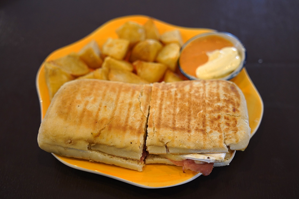 5. Grilled Serrano Ham & Brie Cheese Sandwich (330+ THB) [13/20] – แซนด์วิชสอดไส้แฮมเซอร์ราโน่รสเค็มอูมามิและบรีเสิร์ฟคู่กับมันฝรั่งชิ้นโตและซอสสองชนิด