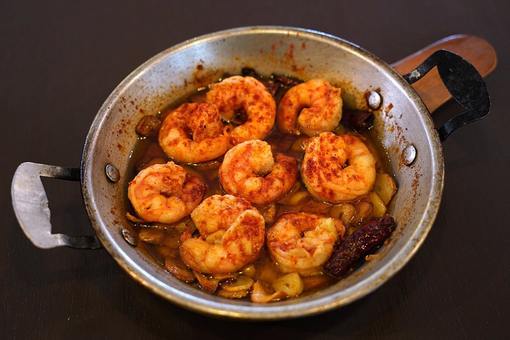 2. Prawns with Garlic and Chilli in Extra Virgin Olive Oil (295+ THB) [14/20] – กุ้งตัวโตเสิร์ฟในน้ำมันมะกอกพร้อมด้วยกระเทียมและพริกปรุงรสแบบเค็มๆมันๆหอมกลิ่นเครื่อง ถือเป็นเมนูกุ้งกระเทียมแบบสเปนที่อร่อยมาก