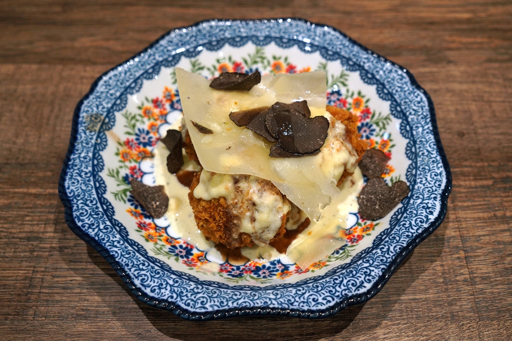 2. Truffle Arancini (420++ THB) [14/20] – ข้าวปั้นก้อนทอดกรอบไส้มอสซาเรลล่าชีสในซอสครีมทรัฟเฟิล