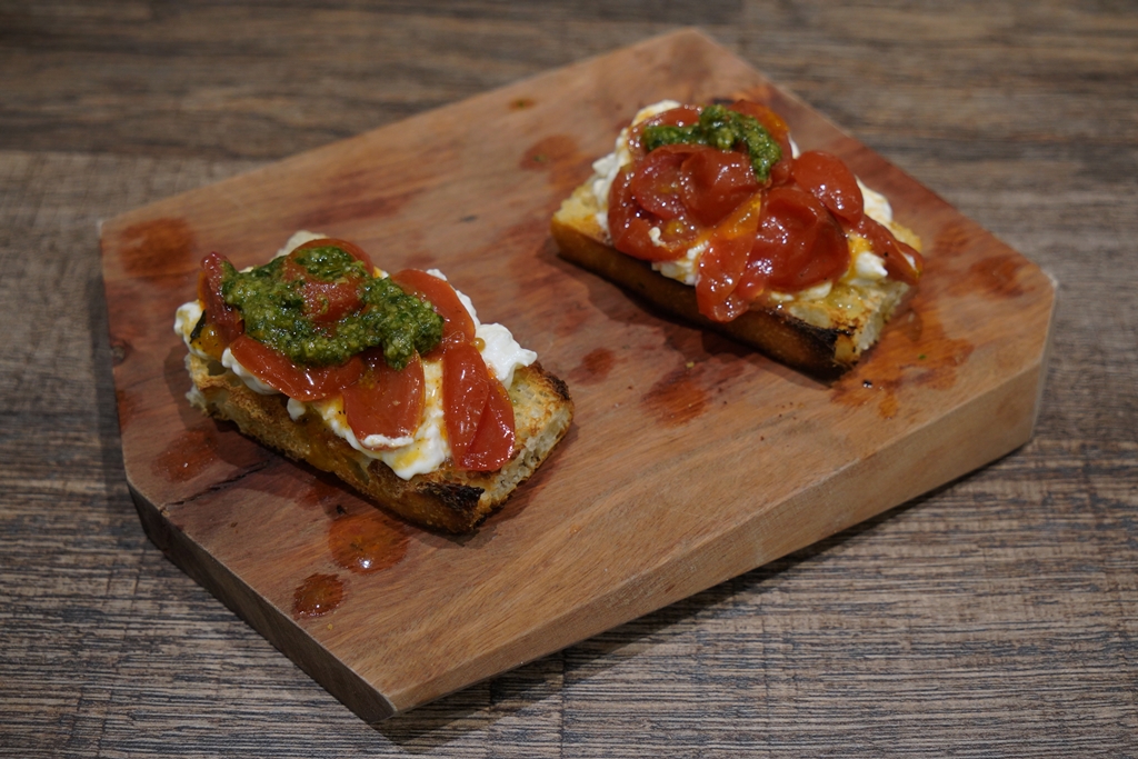1. Bruschetta Caprese (240++ THB) [15/20] – ขนมปังหน้ามะเขือเทศกงฟีกับเบอร์ราต้าชีสและซอสโหระพาเพสโต้